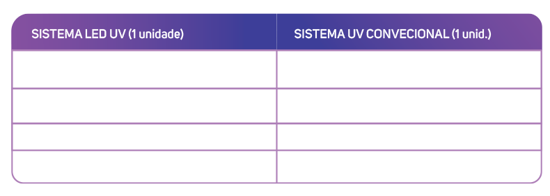 As lâmpadas LED do LED Print duram mais de 10 mil horas, garantindo menos substituições e operação contínua e confiável.